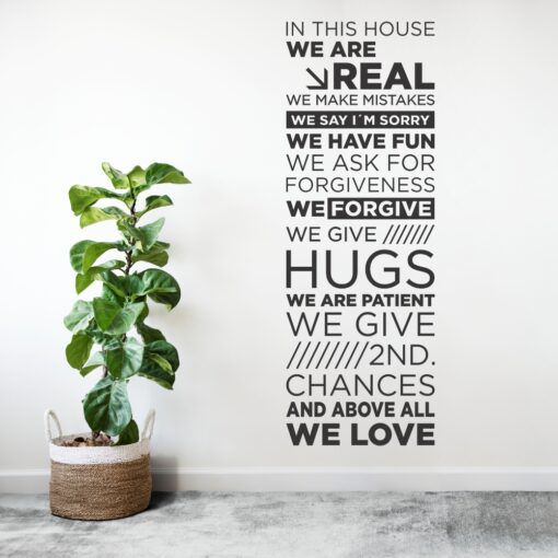 Frase: In this house we are real, we make mistakes, we say I´m sorry, we have fun, we ask for forgiveness, we forgive, we give hugs, we are patient, we give 2nd. chances, and above all, we love.